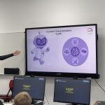 In der vierten AG-Stunde gab es einen besonderen Besuch: Mitarbeitende von Covestro kamen, um darüber zu berichten, wie KI im Unternehmen dabei hilft, die Zusammenarbeit zu verbessern. Zu Beginn fand eine kurze Vorstellung statt: Was macht Covestro eigentlich? Alle waren erstaunt, als sie erfuhren, dass die Produkte von Covestro in vielen alltäglichen Gegenständen verwendet werden, die wir mehrmals am Tag nutzen, denn Covestro stellt Kunststoffe her.