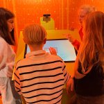 Dann ging es mit Aufgaben durch das Museum: Ob es das Entdecken der Möglichkeiten war, mit KI Krebs zu heilen; die Potenziale der KI-Kunst oder in der Erstellung von eigenen Deepfakes durch KI. Die Jugendlichen mussten ausgestattet mit Aufgaben diese Stationen bearbeiten. Danach kamen alle zu einer Besprechung zusammen: Was haben wir entdeckt? Was haben wir gelernt?