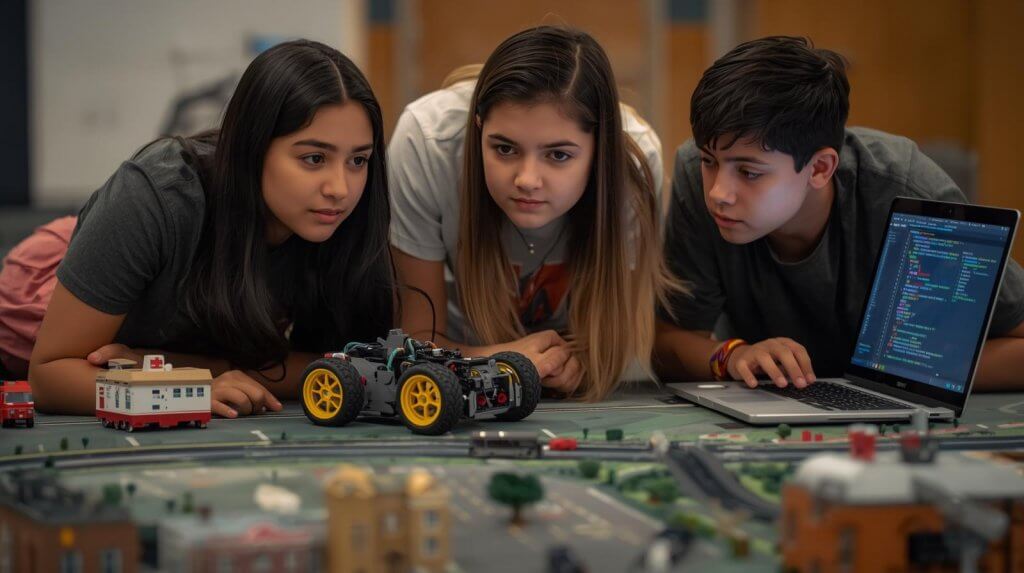 Tauche ein in die Zukunft: Programmiere einen autonomen & intelligenten Roboter! Stell dir vor, du baust einen Roboter, der Medikamente schnell und sicher zu hilfsbedürftigen Menschen bringt — oder einen, der als Linienrichter beim Fußball Spiele fairer macht. In der Robotik‑AG setzt du solche Ideen in einer Miniatur-Stadt oder auf einem Feld um. Du programmierst, […]