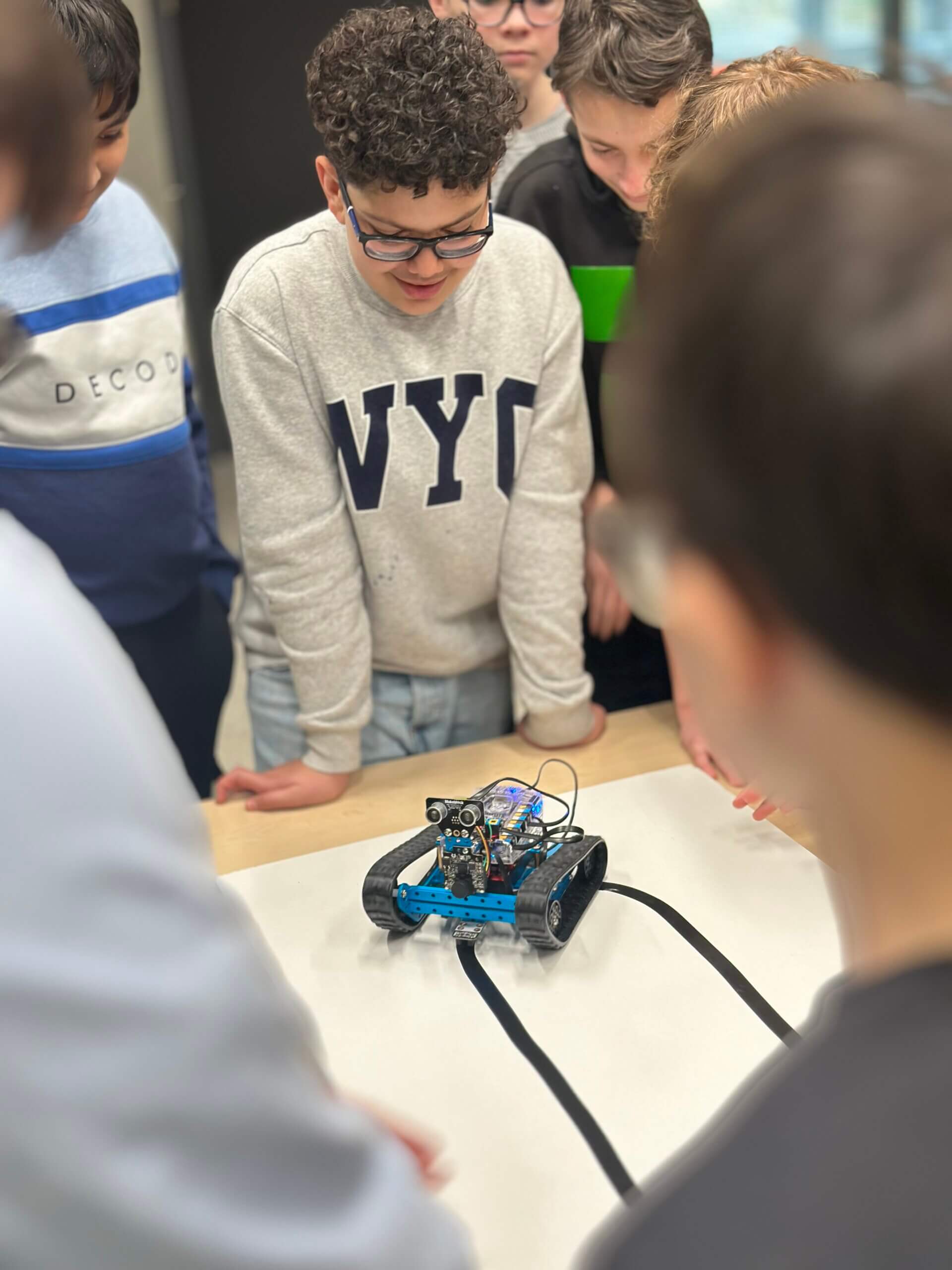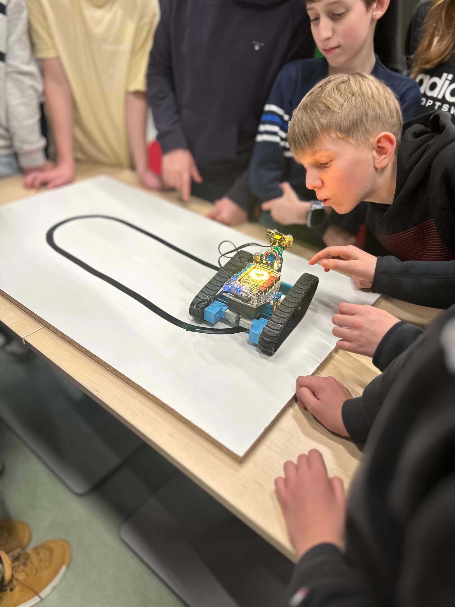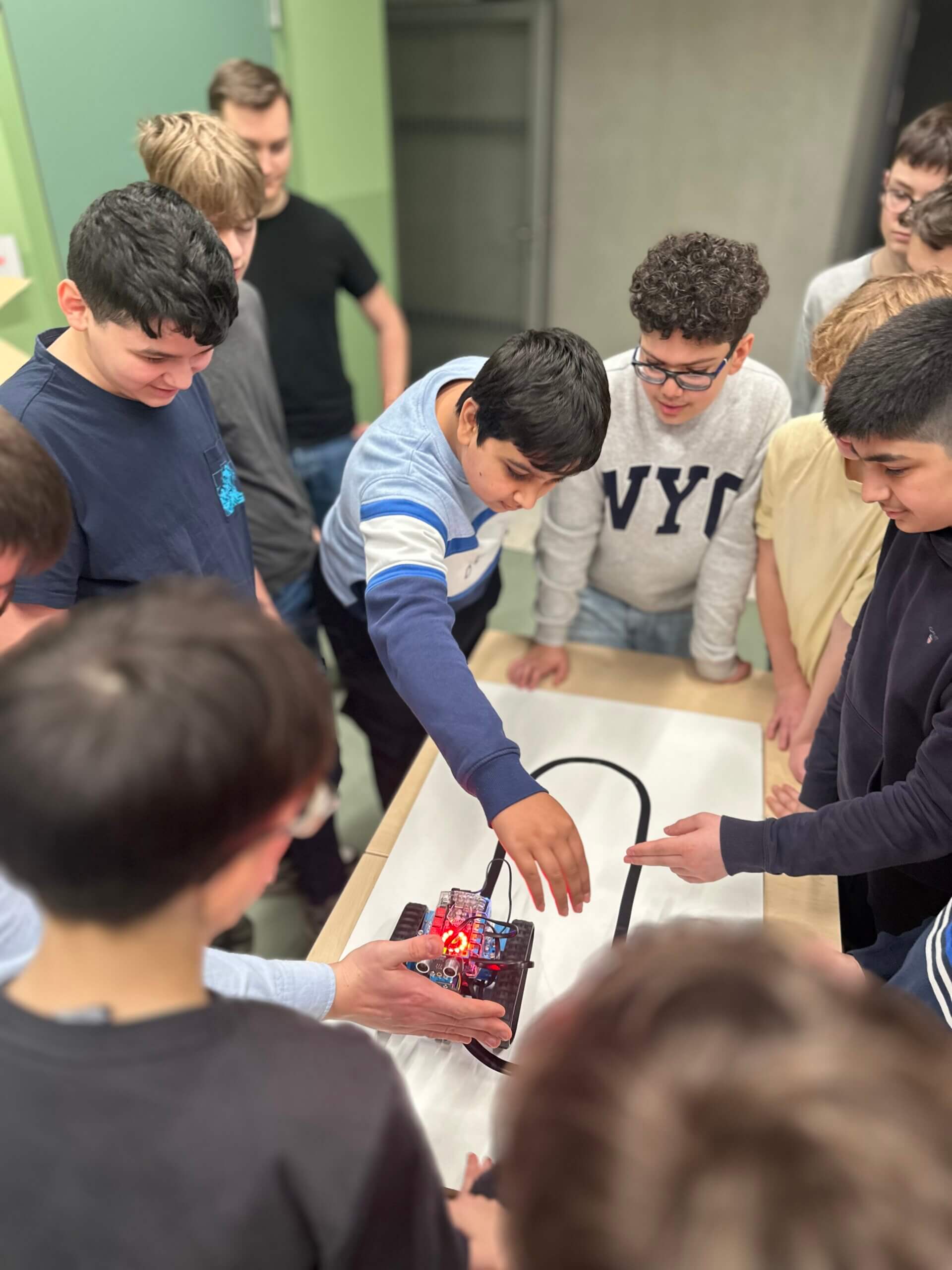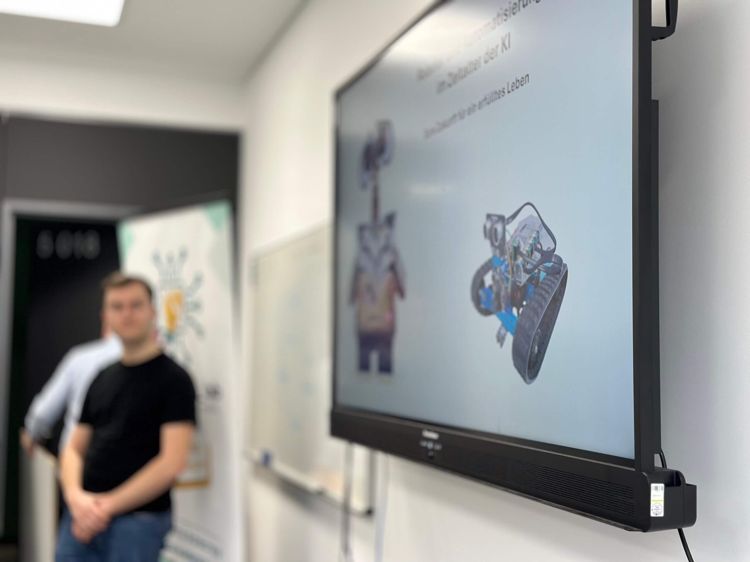 Doch zu Beginn haben die Jugendlichen erst einmal einen Einblick erhalten: Was passiert in der „autonomen Robotik-AG“? In den ersten Stunden lernen die Teilnehmenden grundsätzliches zu Maschinellem Lernen und wie eine KI überhaupt Bilder erkennt und daran Entscheidungen ausrichtet. Dies ist wichtiges Grundlagenwissen um zu verstehen, wie dann später der eigene autonome Roboter Entscheidungen treffen kann.